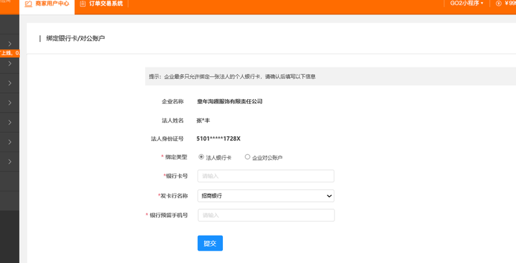 3)银行卡/对公账户绑定