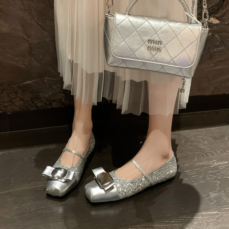 2025新款单鞋 金属扣一字带浅口玛丽珍鞋