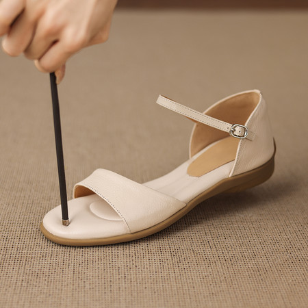 头层牛皮后空凉鞋