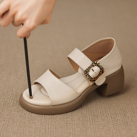 头层牛皮后空凉鞋