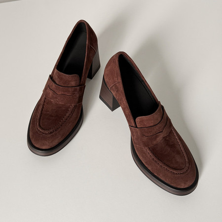 水洗牛皮里外全皮松糕厚底粗跟乐福鞋