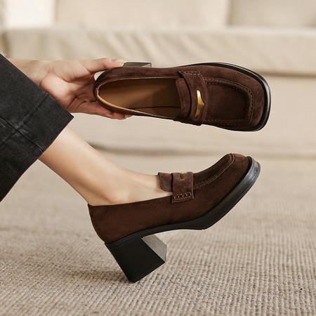 擦色牛皮~头层猪皮里,头层牛皮鞋垫,山茶花乐福鞋