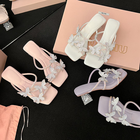 【初夏新款 巨软踩屎感】5CM 一字带坡跟凉拖鞋 百搭透明粗跟花朵凉鞋 数据已测