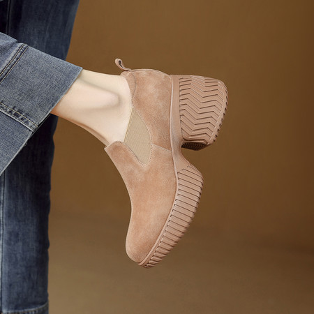 法式复古软羊皮方头女秋冬新款百搭中低跟侧拉链短靴羊羔毛雪地靴