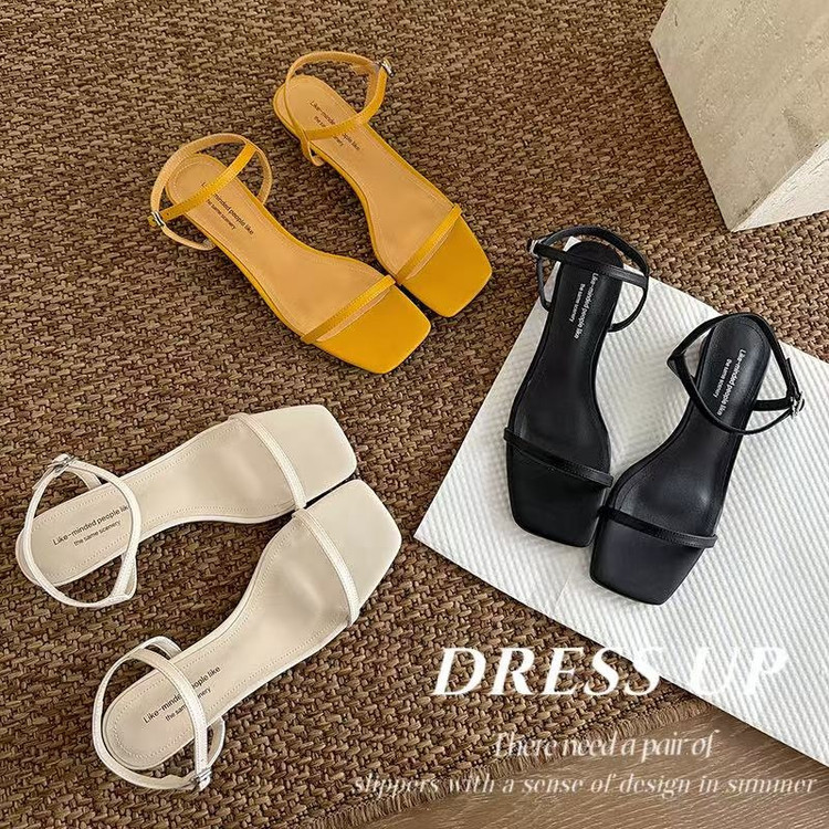 34-40新款一字扣粗跟厚底凉鞋