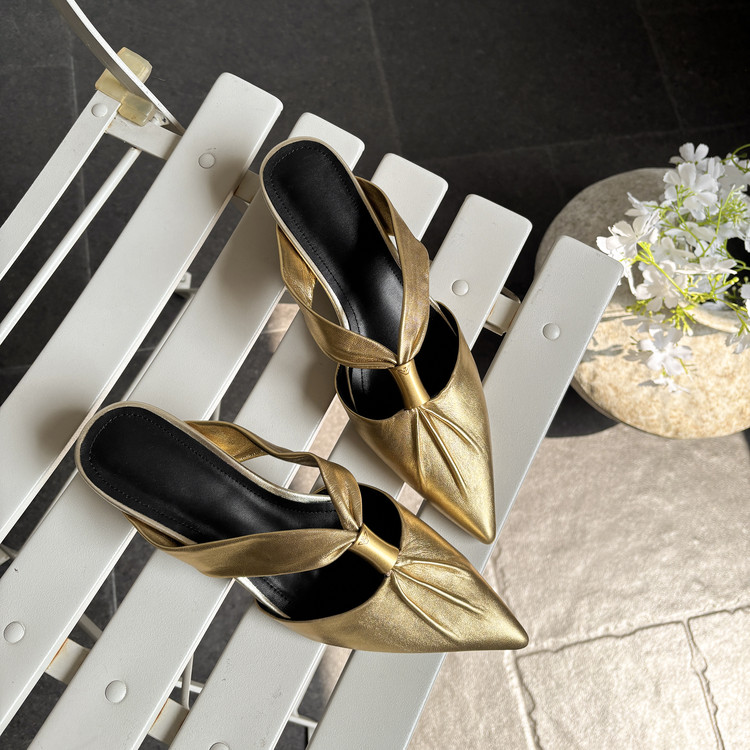 金色平跟连后跟尖头单鞋2026新款女士单鞋