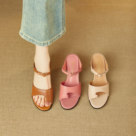 2025春夏季新品 圆头夹趾一字带扣高跟凉拖 百搭气质外穿舒
