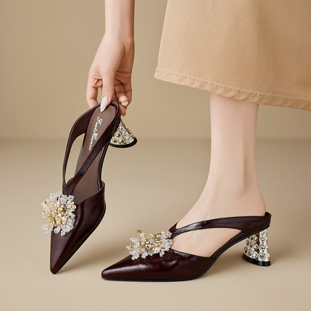 懒人精致神器,法式复古天花板,复古深棕控狂喜,水钻花包头拖,感直接拉满