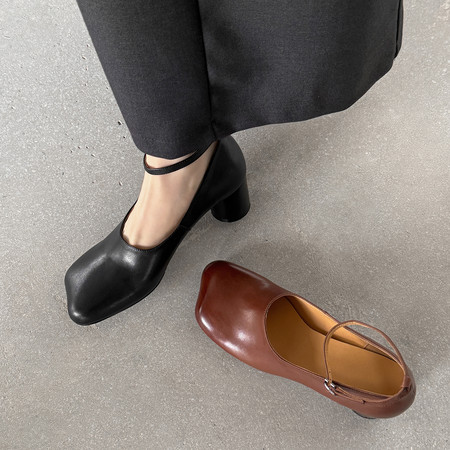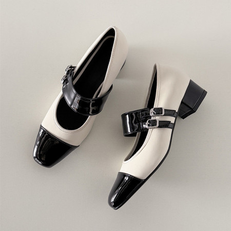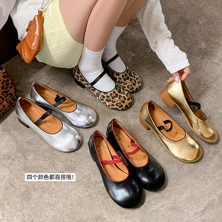 静音通勤鞋~ 圆头中口低粗跟软底软面通勤玛丽珍单鞋