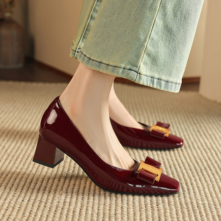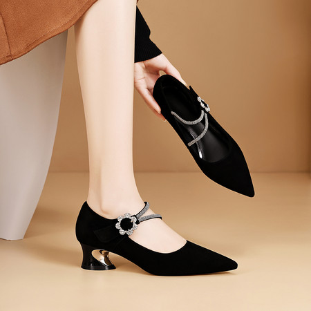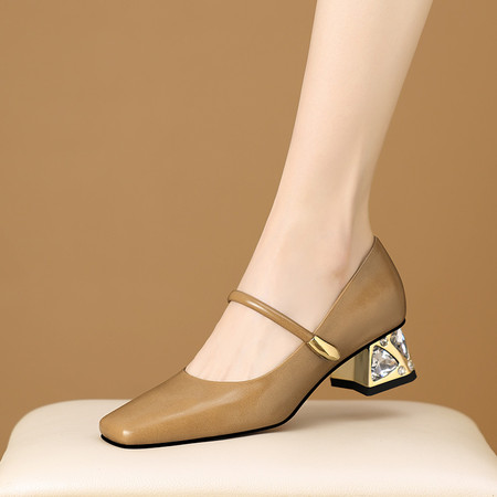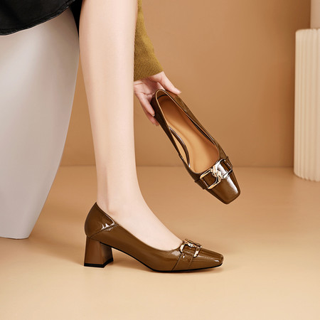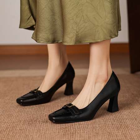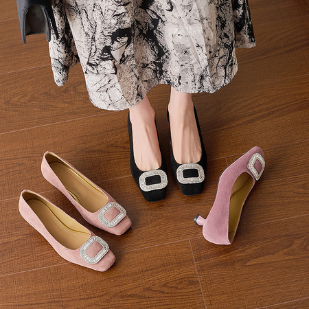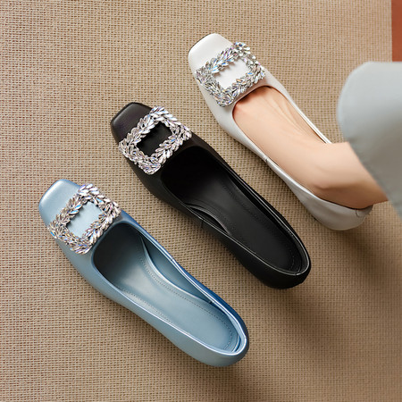低跟小方头系列 水钻方扣高跟鞋 舒适优雅气质女单鞋