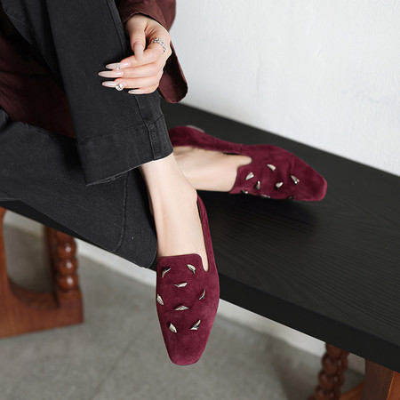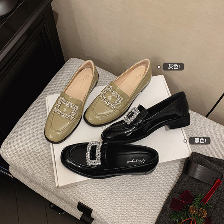【春季新款 数据超好】一脚蹬小皮鞋平底单鞋 水钻方扣乐福鞋 数据已测 上架即卖