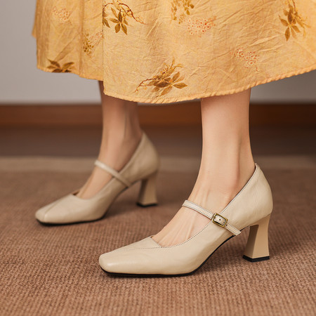 小羊皮成型软底玛丽珍低跟单鞋