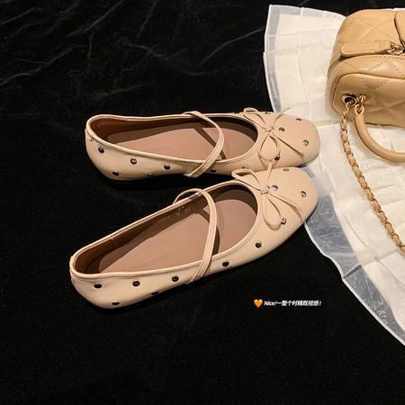 芭蕾舞鞋水钻铆钉平底鞋单鞋大码34-42